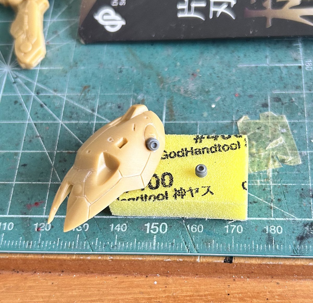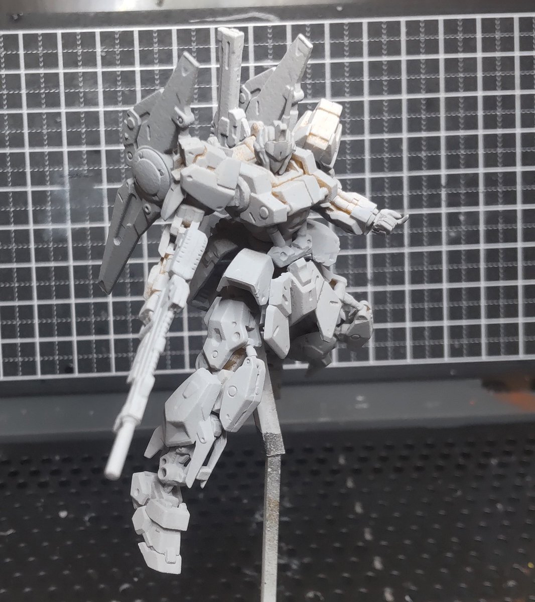 #シルヴァ・バレト・サプレッサー のんびり製作編 #ガンダムアーティファクト ここまで合わせ目がありましたが バックパックのパーツがパックリ隙間があるくらい酷いので タミヤ イージーサンディング で隙間を埋めてヤスってます😁✨ pic.x.com/LA7GFBaFf3