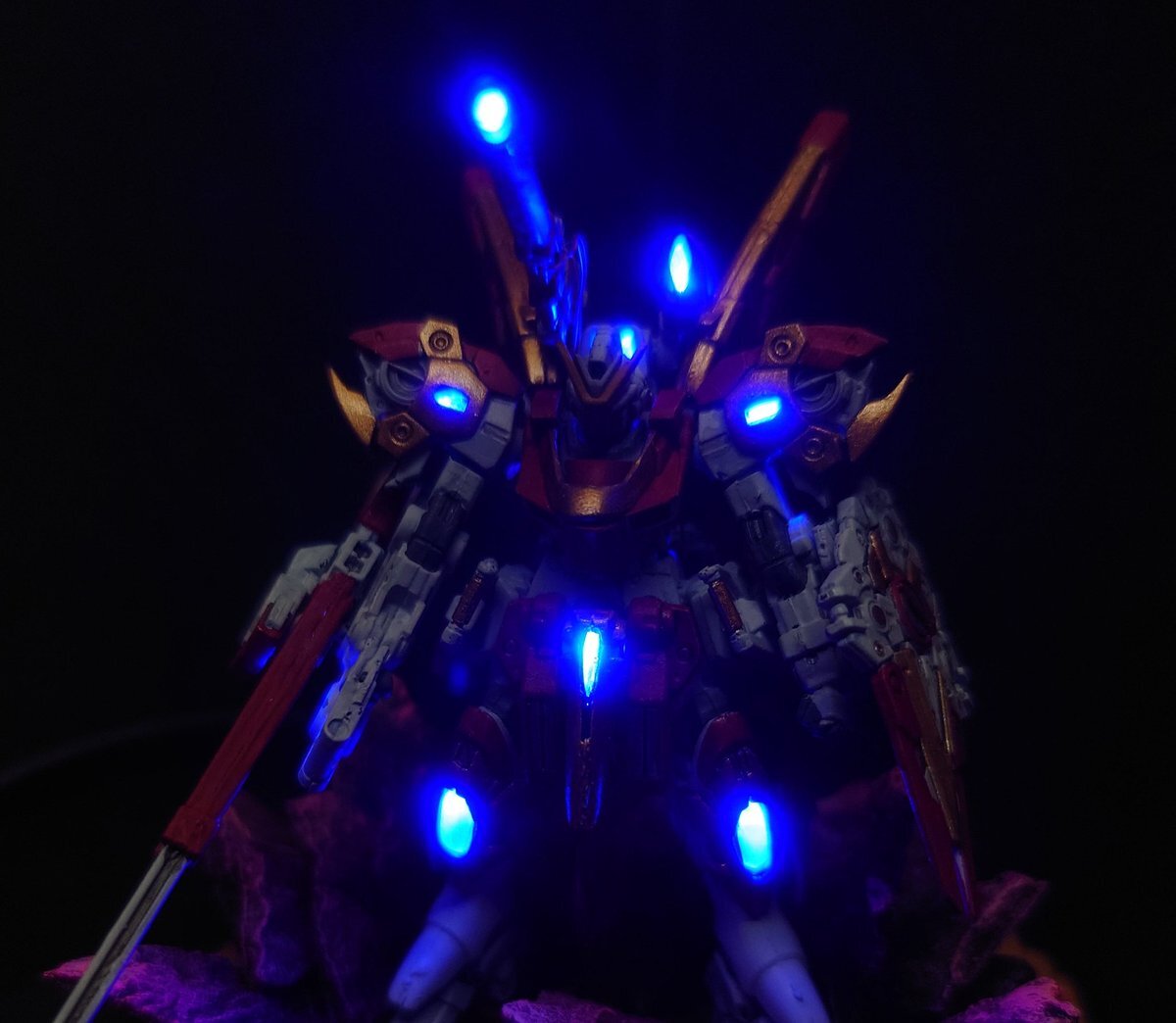 出来た!前回より1個多くLED搭載。全部で11個になった!クリアカラーだったので内側から遮光したので発光のメリハリが出て👍️満足😆 #ガンダムアーティファクト #V2アサルトバスター #ガンプラ改造 #LED pic.x.com/YtphK6BZHz