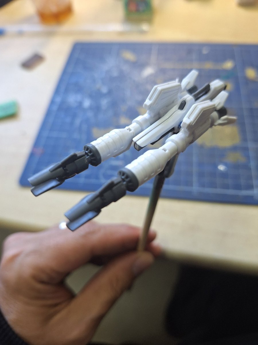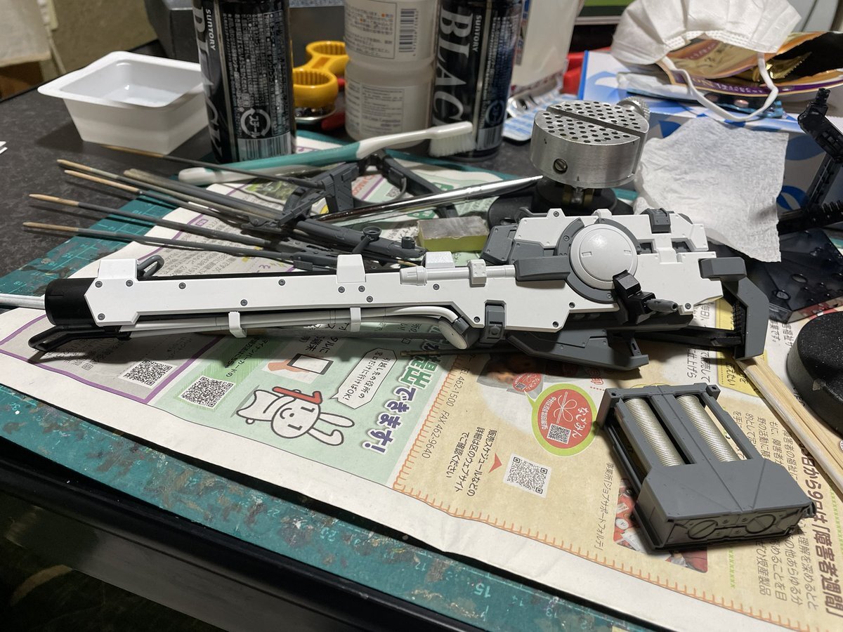お昼はここまで🎵 ミキシングプラン完成したので、夜からはヤスリがけかな😆 画像は今回の目玉 「ダブルショートビームランチャー✨」 #ガンプラ好きな人たちと繋がりたい #ガンプラの画像を貼るとRTされると聞いて #ガンプラは自由だ #ガンプラ改造 pic.x.com/loqXGnxTdY