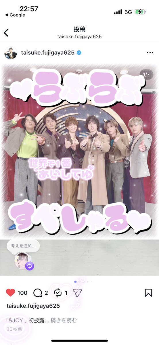 明るくHappyなパフォーマンスが凄く好きなキスマイで繰り返し見たくなる!特に、あんなに細かい振りでフォーメーションの変化も多いのに藤ヶ谷くんの余裕のある歌声がさすがです✨惚れ惚れしちゃう🩷 7:21くらい〜 #キスマイ &Joy #ベストヒット歌謡祭 #キスマイ初エンジョイ tver.jp/episodes/eprwj… x.com/besthitskayosa…