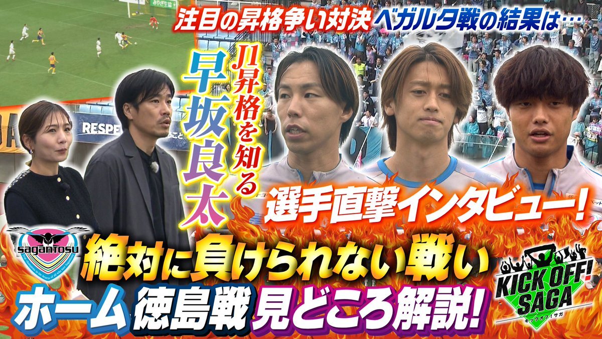 あす10時25分~ #キックオフサガ 🔥絶対に負けられない戦い🔥 ホーム徳島戦の見どころを解説! J2リーグもいよいよ終盤! #サガン鳥栖 は今週末徳島ヴォルティスと対戦します! 勝てば再び昇格プレーオフ圏内に上がれる重要な一戦を前に、2011年のJ1昇格を知る早坂良太が選手に直撃インタビュー🎤 pic.x.com/sscKUMBwCE