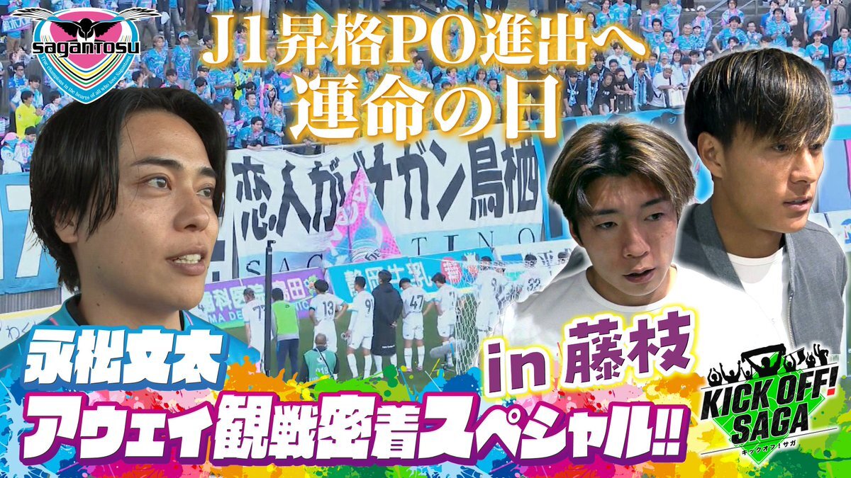 あす10時25分~ #キックオフサガ⚽️ J1昇格プレーオフ進出への望みをかけた運命の日。 藤枝に勝たないとJ1昇格の可能性がなくなる #サガン鳥栖 番組MC #永松文太 が現地で見守る中、試合のホイッスルが鳴る・・・ 勝利の女神はサガン鳥栖に微笑むのか?! pic.x.com/yfgeylp0bf