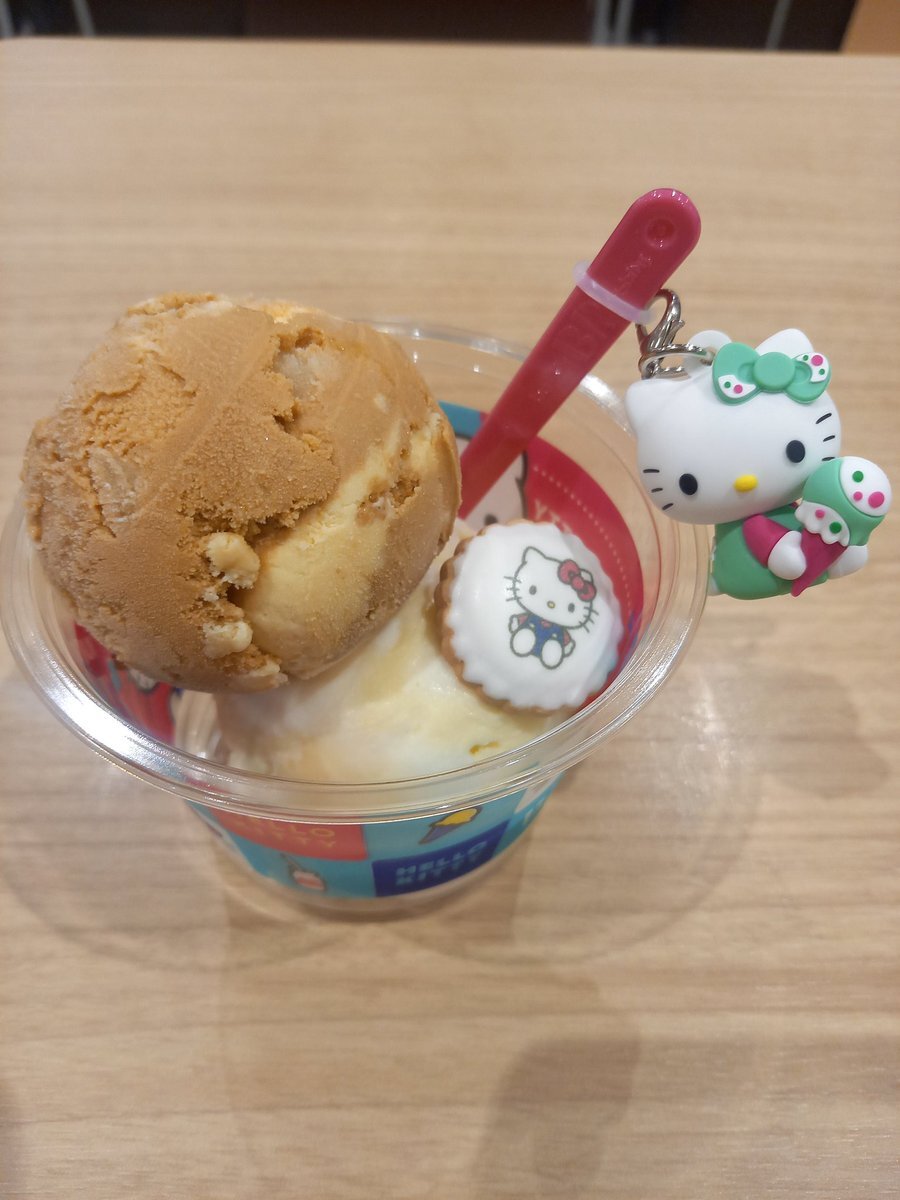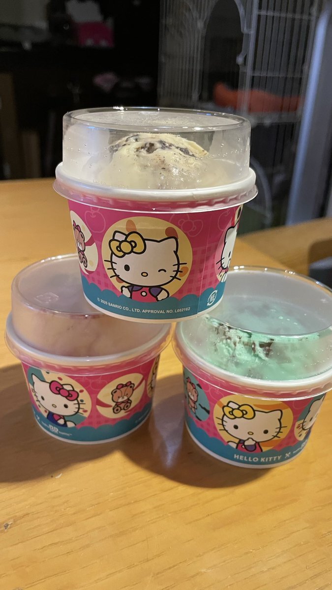 買っちゃたよ🍨チャーム付きとアイスクリームセット8こ入り!ブランケット可愛い🎀ダブルカップのカップ欲しさで悩んだけどやめた( ᐛ )وめっちゃ並んでた💦多分来週辺りにスリーブ付き買う気がする😅 #サーティワン #キティちゃん誕生日 pic.x.com/8fX4RNGkkn