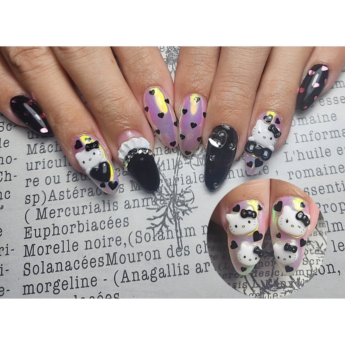 おきゃわ❤ キティちゃん お誕生日おめでとう🎂 #キティネイル #キティちゃん誕生日 #Happybirthday #blackkitty 詳細はこちら↓(ネイルブック) nailbook.jp/design/9687934/ pic.x.com/vSwHZGSyAl