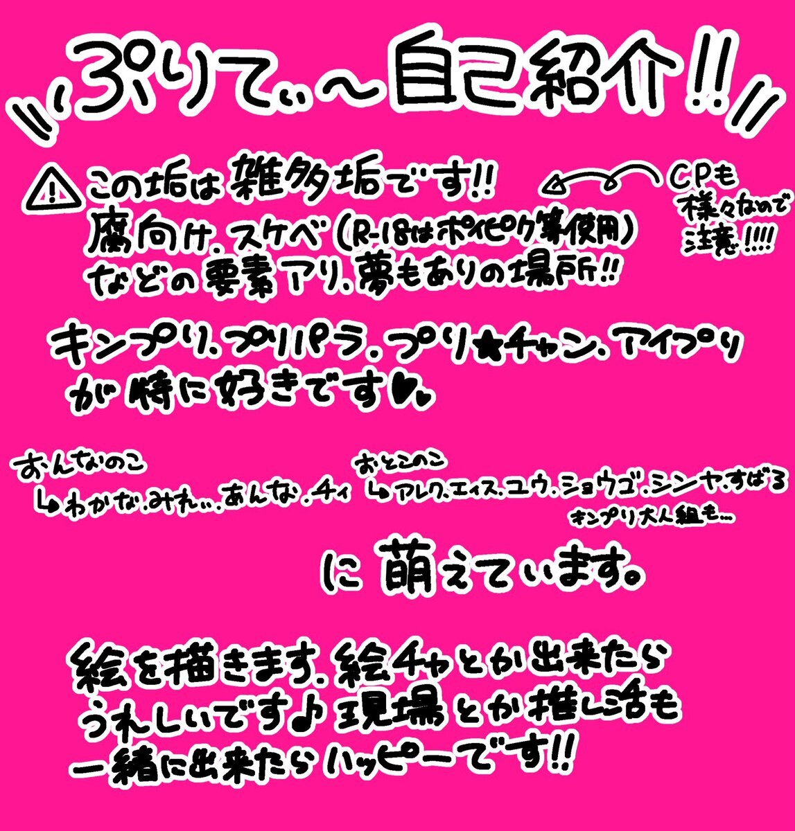 1枚目(テンプレ見つからず、これに)とプロフなど見てください! プリズムのお友達増やしたいのでタグを! 雑食、地雷はスルー出来るのでこちらへの配慮は大丈夫です👍 #プリズムエリートさんと繋がりたい #キンプリクラスタさんと繋がりたい #プリティーシリーズ好きな人と繋がりたい pic.x.com/LQ2CiGOABE