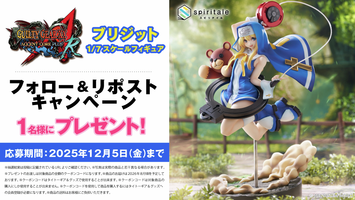 \予約受付開始記念 #キャンペーン/ 『GUILTY GEAR XX ΛCORE PLUS R』「#ブリジット」1/7スケールフィギュアを1名様に🎁 ■応募方法 ①@Spiritale_shopをフォロー ②この投稿をリポスト ③present.social-camp.com/Spiritale_shop… で結果を確認 ■応募締切 12/5(金) 23:59 #ギルティギア #GGXX #GUILTYGEAR