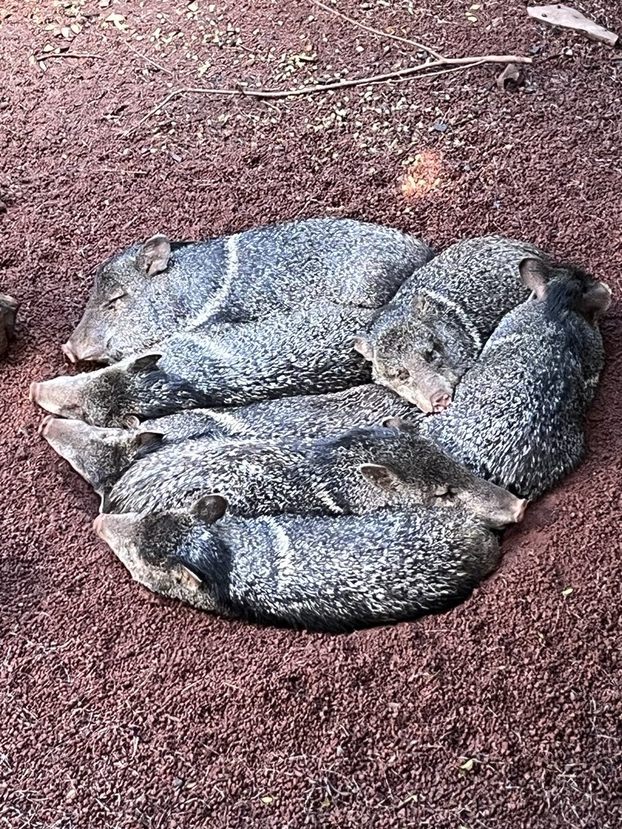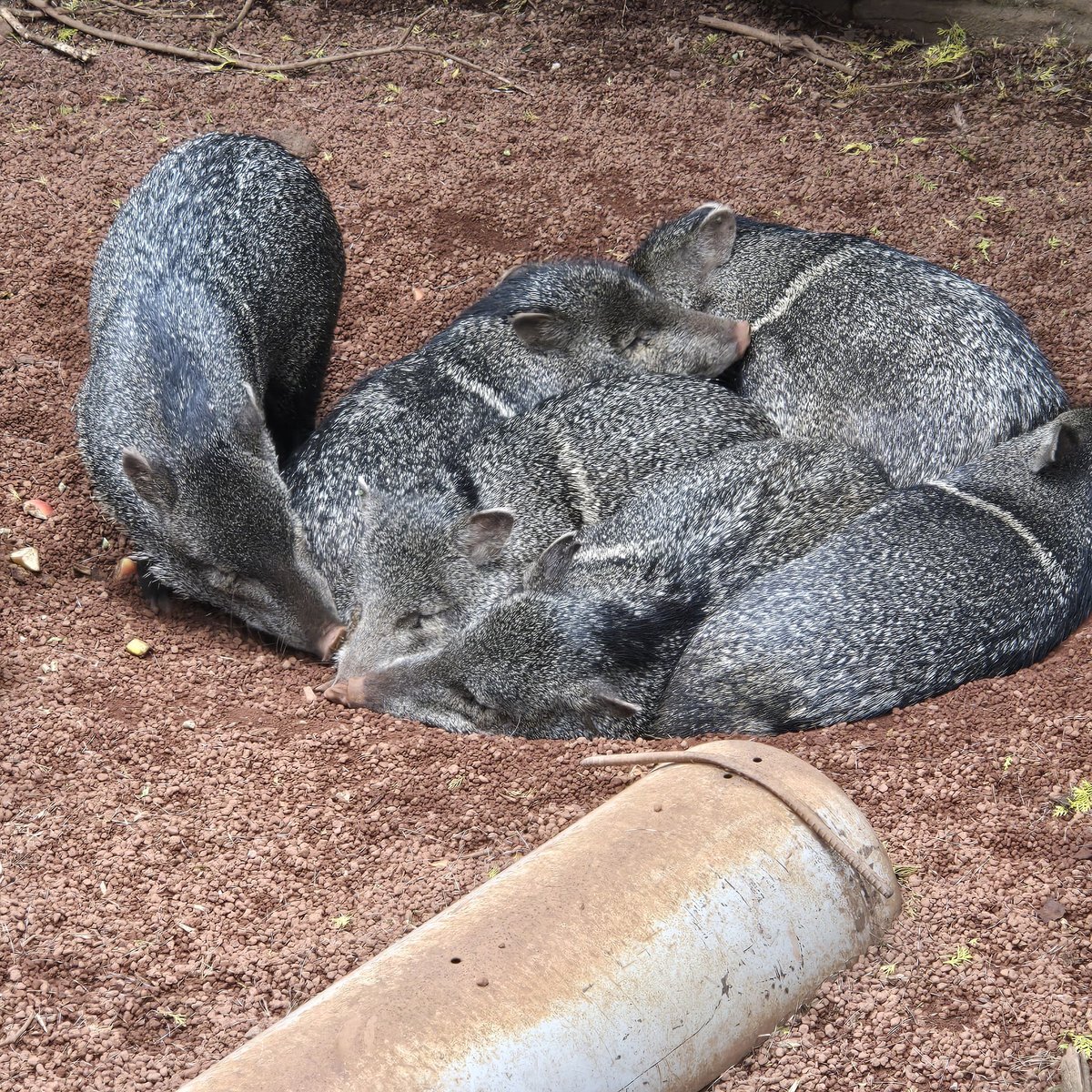 みんなでお昼寝 ペッカリーの赤ちゃんも大きくなってきています!(まえり) #ネオパーク #クビワペッカリー pic.x.com/Ke43DEC1lE
