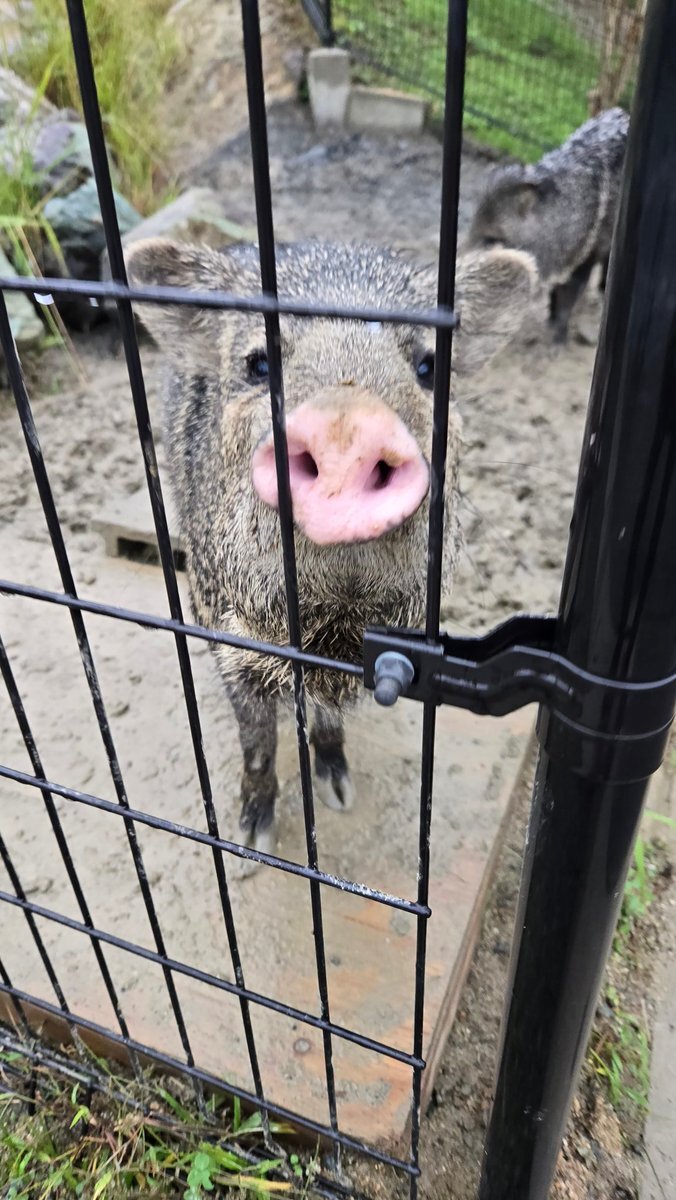 カラカルだけじゃないよ‼️ ペッカリーの息遣いを ものすごく近くで感じられたり 長い斜面の放飼場を駆け降りる姿を観察できたり 家に帰ってペッカリーを検索しまくりました😆 #ごかつら池どうぶつパーク #クビワペッカリー pic.x.com/RatG2CQsel