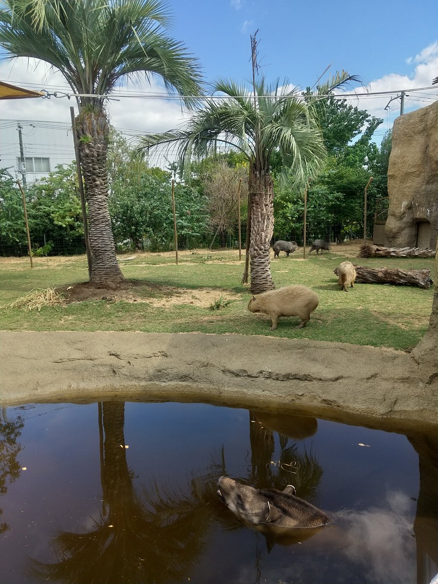 パンタナール手前のカピたちはのんびりだけど、奥の2頭は活発に走ったりしてた。見てて飽きない楽しいエリア。ただし、日差しがちとつらい😅 #神戸どうぶつ王国 #カピバラ #ブラジルバク #クビワペッカリー pic.x.com/ltO6af1lES