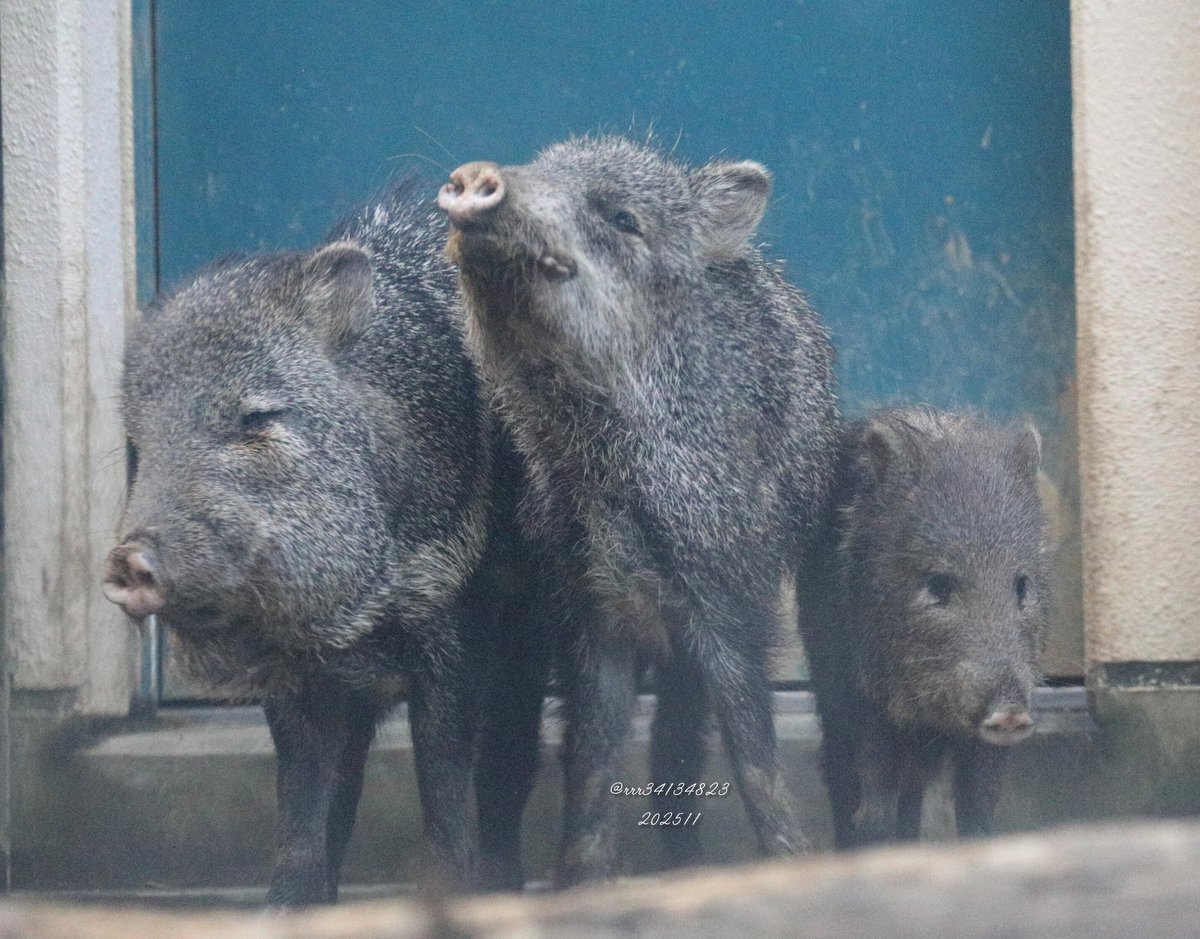 アイ、マイ姉妹は今日も元気です。     2025.10.30 #上野動物園 #クビワペッカリー pic.x.com/fQbxUCqw67