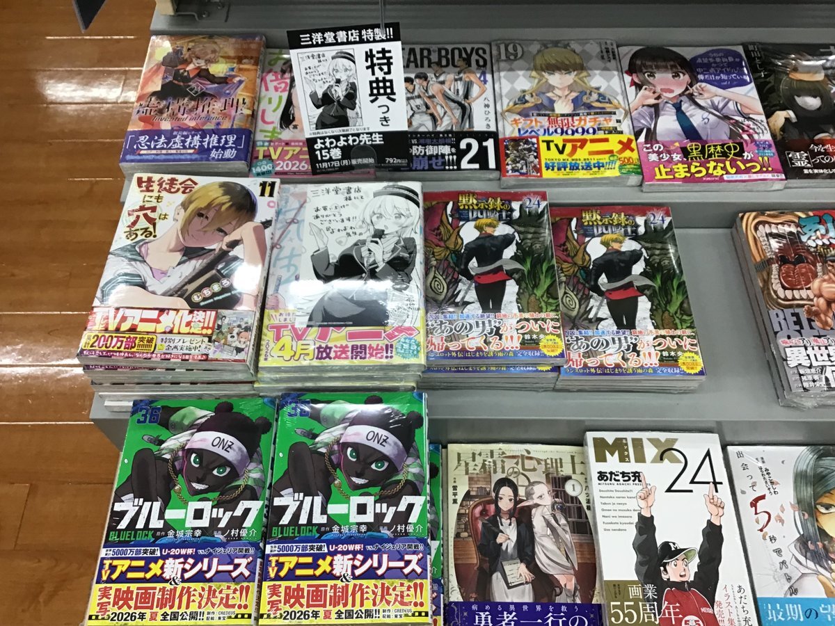 11月17日は #講談社 #KADOKAWA コミック発売日! 新刊少年・少女コミックコーナーをお忘れなく! #ブルーロック #生徒会にも穴はある #よわよわ先生 #黙示録の四騎士 #カイジンフゲキ(Vtuberコーナーにもございます) #クリスタルお嬢様は男の子 #皇帝廟の花嫁探し pic.x.com/FVJUkoecw9 x.com/KAIJINFUGEKI_W…