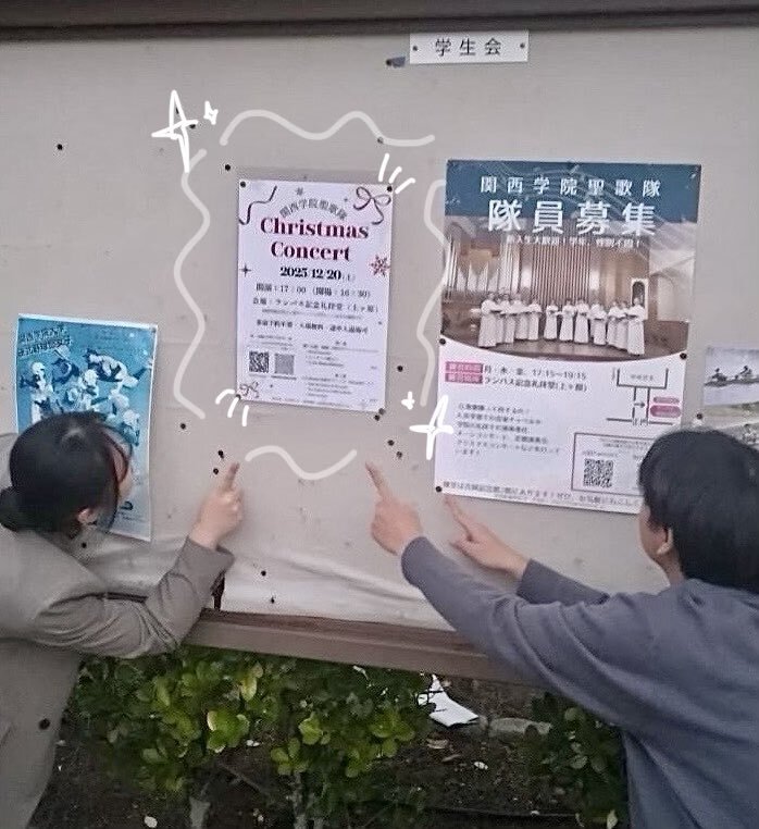 本日、クリスマスコンサートのポスターを上ヶ原キャンパス内に3枚貼りました🎄 キャンパスを歩く際は、ぜひ探してみてください🙌 #関西学院聖歌隊 #聖歌隊日記 #クリスマスコンサート pic.x.com/rmWHHQ8VN7