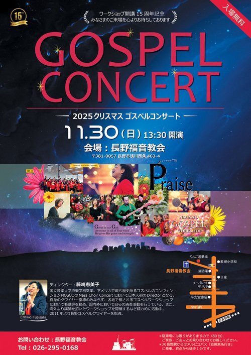 11/30(日)13時半~ 2025クリスマス ゴスペルコンサート @ 長野市 長野福音教会 入場無料 ディレクター:藤崎恵美子 nagano-fukuin-kyokai.church #ゴスペル #ゴスペルコンサート #クリスマスコンサート #ゴスペルライブ pic.x.com/DY5vWTXsYu