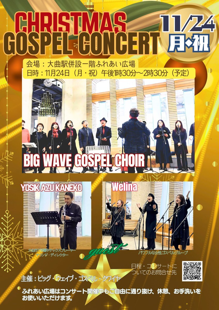 11/24(月祝)13時半~ Big Wave Gospel Choir CHRISTMAS GOSPEL CONCERT @ 秋田県大仙市 大曲駅ふれあい広場 入場無料 …gi6bigwavegospelchoir.hp.peraichi.com #ゴスペル #ゴスペルコンサート #クリスマスコンサート #ゴスペルライブ pic.x.com/WcxiBvFQdw