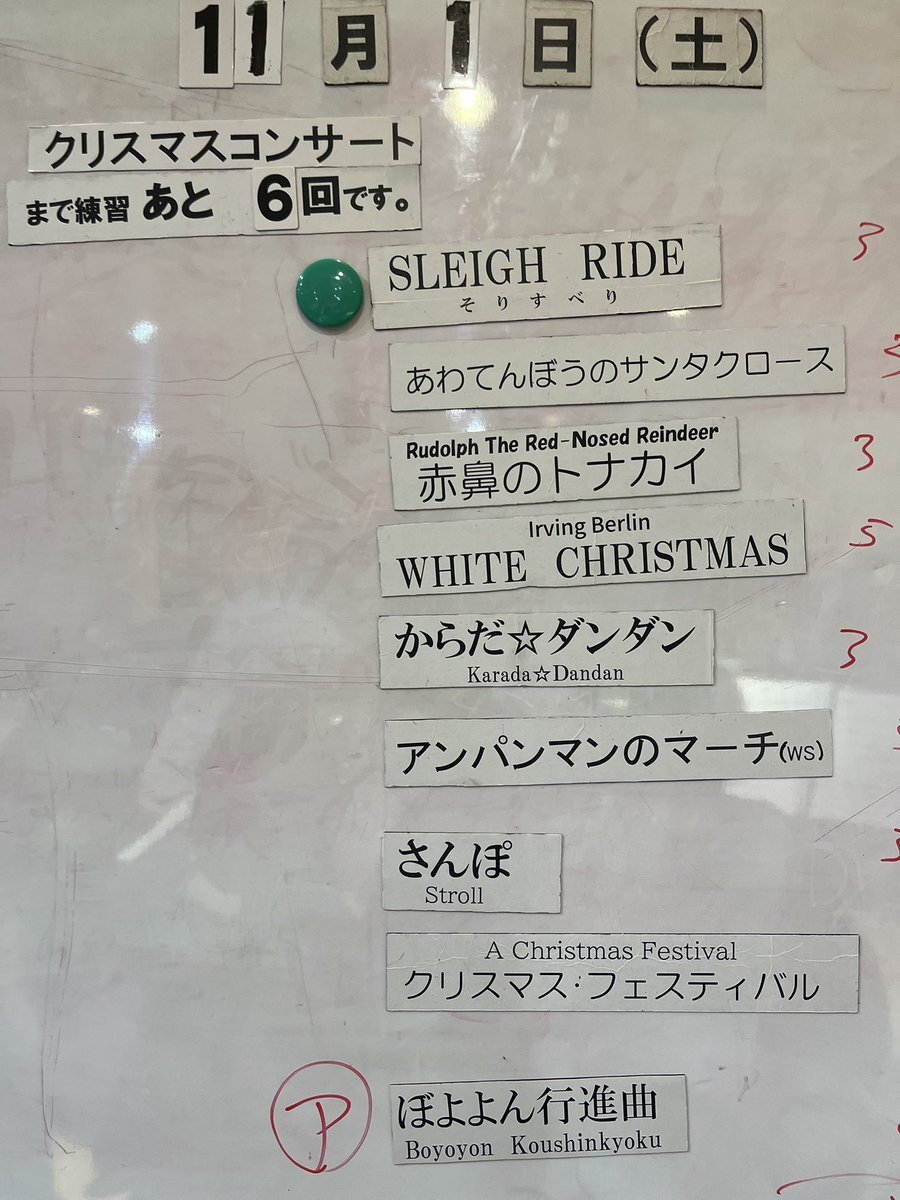 昨日は練習日でした。 とだがわこどもランドでのクリスマスコンサート本番まで練習は後6回。🎄 練習にも熱が入ってきました。💪 プログラム順も決まりましたよ! #吹奏楽 #名古屋 #とだかわこどもランド #クリスマスコンサート pic.x.com/nq6bNzgH3I