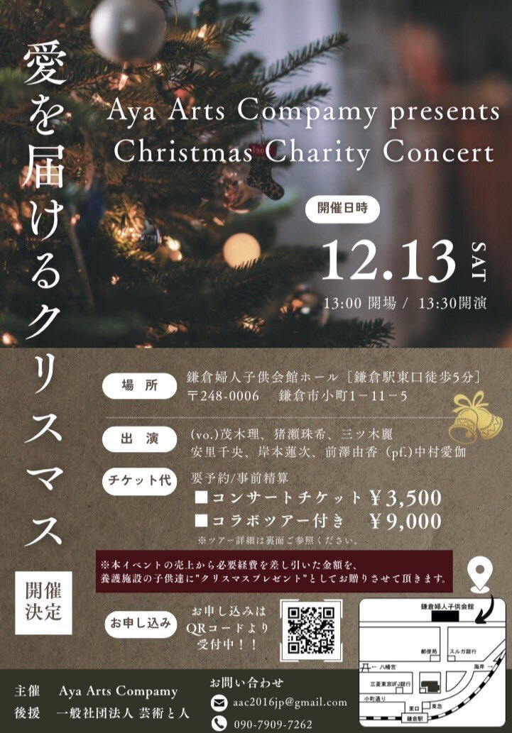 📅12月13日(土) 🕐13:00開場 / 13:30開演 📍鎌倉婦人子供会館ホール(鎌倉駅東口徒歩5分) 💐出演 茂木理 / 猪瀬珠希 / 三ツ木麗 / 安里千央 / 岸本蓮次 / 前澤由香 (pf.)中村愛伽 #AyaArtsCompany #クリスマスコンサート #チャリティーコンサート #ChristmasConcert #Charity #鎌倉 #鎌倉イベント pic.x.com/0UKxNIbxtN