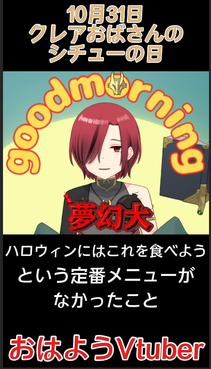 おハロウィン〜🎃✨ 岩飛ギンコだぞ! 今月も終わり!2025年も残り2ヶ月ぅ!! そんな10月31日の本日は #クレアおばさんのシチューの日 🧓 ハロウィンの定番メニューってないし、この時期にぴったりなものって事で 江崎グリコ様が制定したそうな ちなみに私はご飯にシチューかける派 #おはようVtuber pic.x.com/0Rl7GQC28A