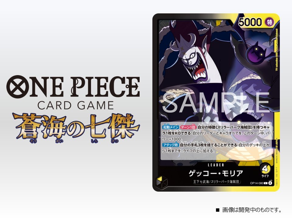 ★OP-14カード紹介★ 11/22(土)発売のブースターパック『蒼海の七傑【OP-14】』に収録するカードをご紹介! 今回はリーダーカード「ゲッコー・モリア」、イベントカード「早くおれを海賊王にならせろ!!!」です。 ▼商品情報はコチラ onepiece-cardgame.com/products/boost… #ワンピカード #ONEPIECEカードゲーム