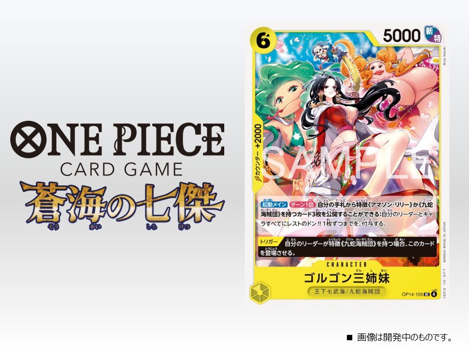 ★OP-14カード紹介★ 11/22(土)発売のブースターパック『蒼海の七傑【OP-14】』に収録するカードをご紹介! 今回はキャラクターカード「ゴルゴン三姉妹」「リンドウ」です。 ▼商品情報はコチラ onepiece-cardgame.com/products/boost… #ワンピカード #ONEPIECEカードゲーム #ONEPIECE