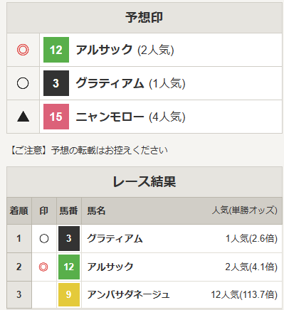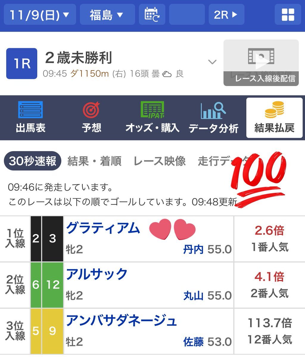 福島1R 結果 ◎#アルサック 2人気2着🥈 ○#グラティアム 1人気1着🥇 →ワイド、複勝★的中🎯🎯 勝ちを確信したがグラティアム強し(>_<) pic.x.com/3cBcdn1IXr