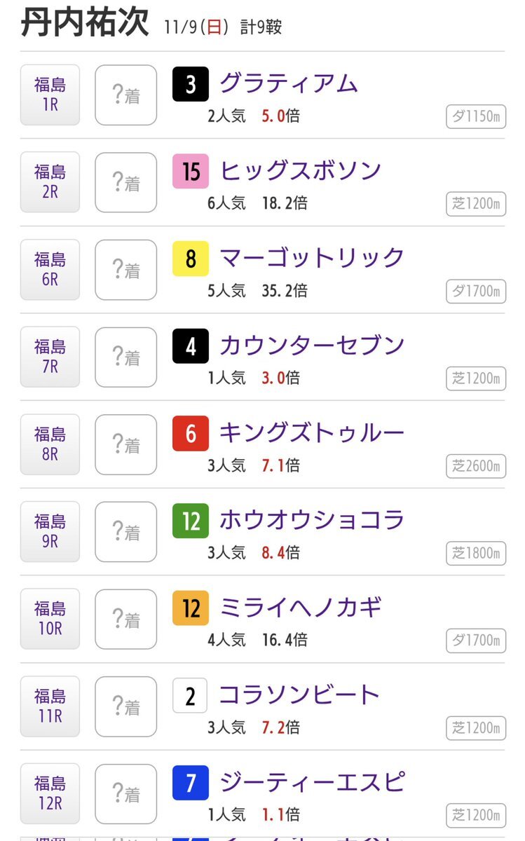 2025.11.09 09:45 福島01R 【AI予測複勝率】 03 #グラティアム     60.08 12 #アルサック      53.71 02 #ハルヒメ       51.02 10 #コブラツイスト    45.63 15 #ニャンモロー     39.48 ⬇️全レースAI予測無料公開中📔 sites.google.com/view/vrs18/ pic.x.com/eTNt46bqgt