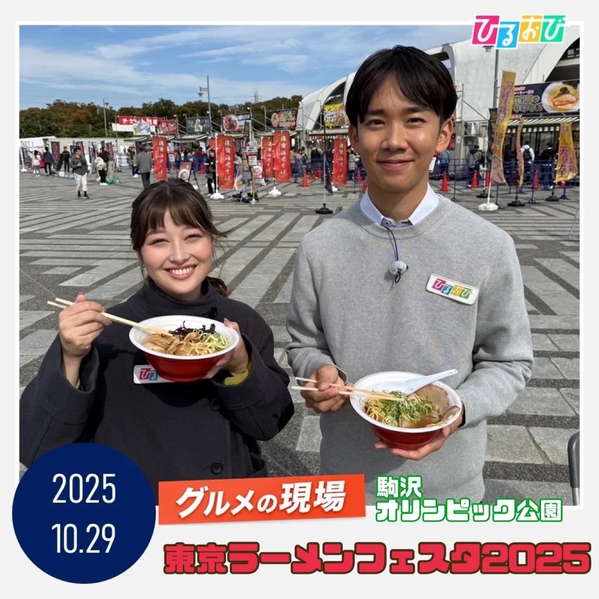 #グルメの現場 では #浦野芽良アナ#長尾翼アナ#駒沢オリンピック公園 で開催中🌟 # 東京ラーメンフェスタ2025 へ🍜 全国39のラーメン店が集結🤩  しじみの出汁をきかせたまぜそばや、えびそばなど個性豊かな一杯が勢ぞろい✨ pic.x.com/bI14MjWqXH