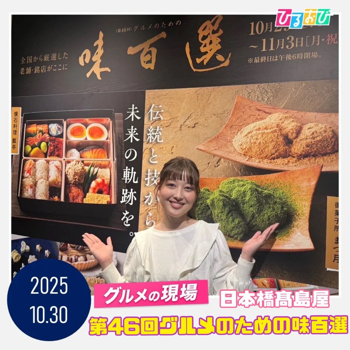 #グルメの現場 では #浦野芽良アナ が 日本橋高島屋で開催中の 「第46回グルメのための味百選」へ🍽️✨ 全国から厳選した老舗や銘店およそ80店舗が大集結👀❣️ "名店による新たな味のチャレンジ"として、この催事でしか食べられない限定グルメや 秋を感じるスイーツが堪能できます🤤 pic.x.com/R0NzkCKnaX
