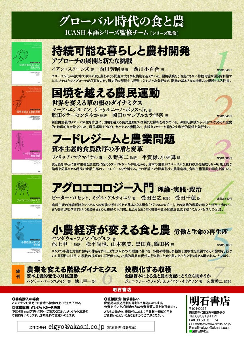出来立てホヤホヤの新刊『#フードレジームと農業問題:資本主義的食農秩序の矛盾と変革』(シリーズ #グローバル時代の食と農)は、待望の翻訳本。世界(日本も一部)の食と農のシステムが、歴史的にどう構築されてきたのかを学べる必読書で、超オススメ↓ akashi.co.jp/book/b670583.h…