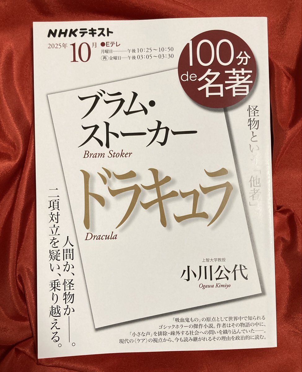 《小説『ドラキュラ』はいま必読の書なのです。略。なぜなら現代の私たちが陥りがちな二元論や二項対立を乗り越えようという意図を持って書かれた物語だからです。略 怪物と人間、善と悪、強者と弱者といった、わかりやすい振り分けを否定する仕掛けが張り巡らされています》 小川公代 100分de名著