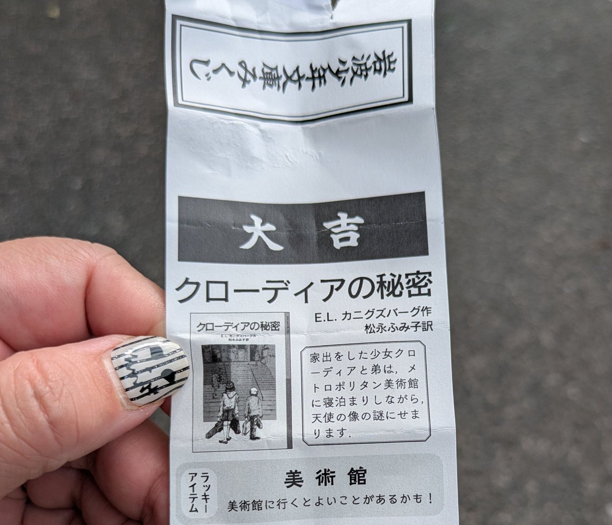 大吉でました♥ラッキーアイテムが美術館とはうれしい🎨『クローディアの秘密』大好きな一冊です。 #ケストナーとわたしたち展 #合言葉ケストナー pic.x.com/SNZX5av8ia