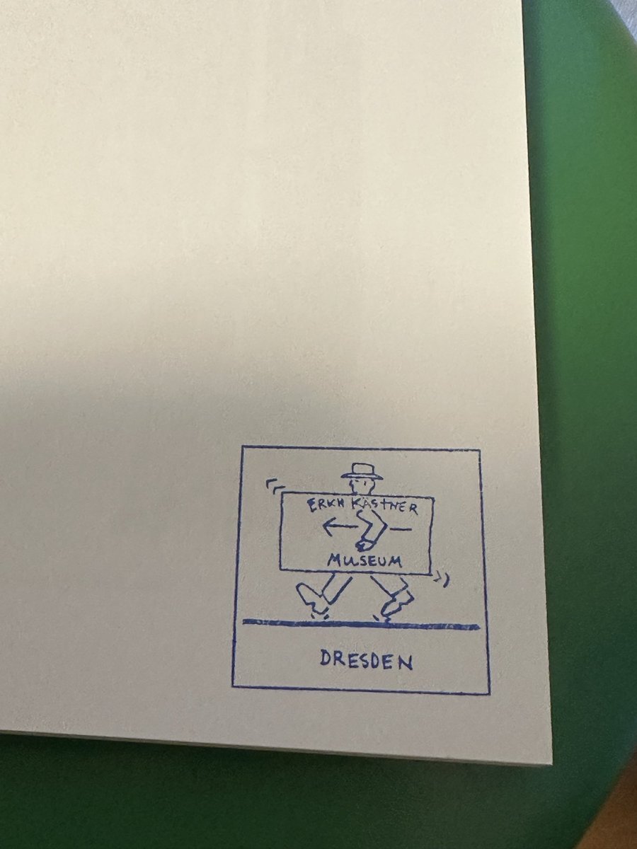 明日までの #ケストナーとわたしたち展 にちなんで。 2008年夏のドレスデンのケストナーミュージアムの特別展は「翻訳されたケストナー」でした。お土産に買った本は『ぼくが子どもだったころ』の原著。スタンプ付き。この時も1ユーロ170円だった!今よりは円高ですが🤣 #合言葉ケストナー pic.x.com/LUA64WvE3c