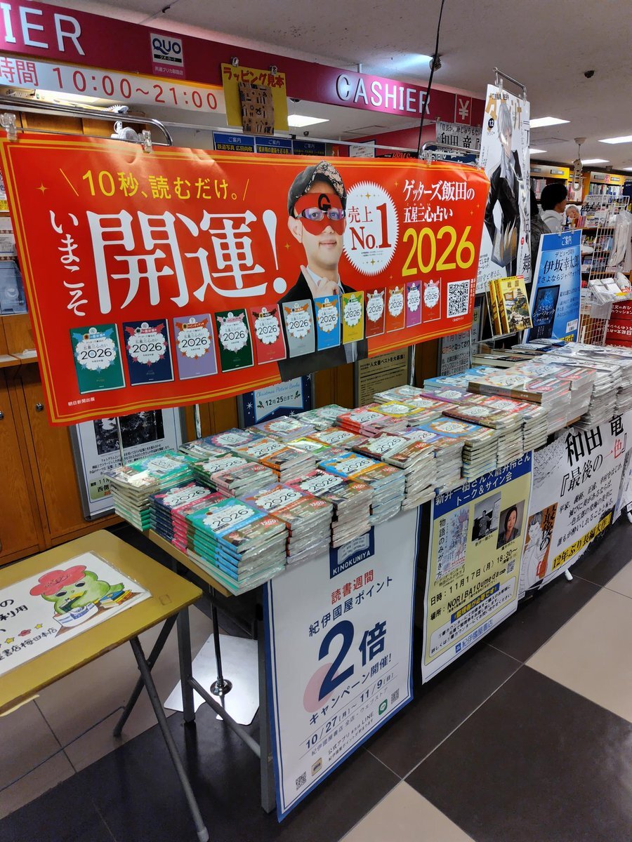 11月4日(火)現在、お買い上げのお客様へのイベント抽選店頭で実施継続しております。 まだチャンスございます!!! 無くなり次第終了ですので、お早めにどうぞ!! !! #ゲッターズ飯田 #ゲッターズ飯田の五星三心占い2026 x.com/asahiya_nara/s…