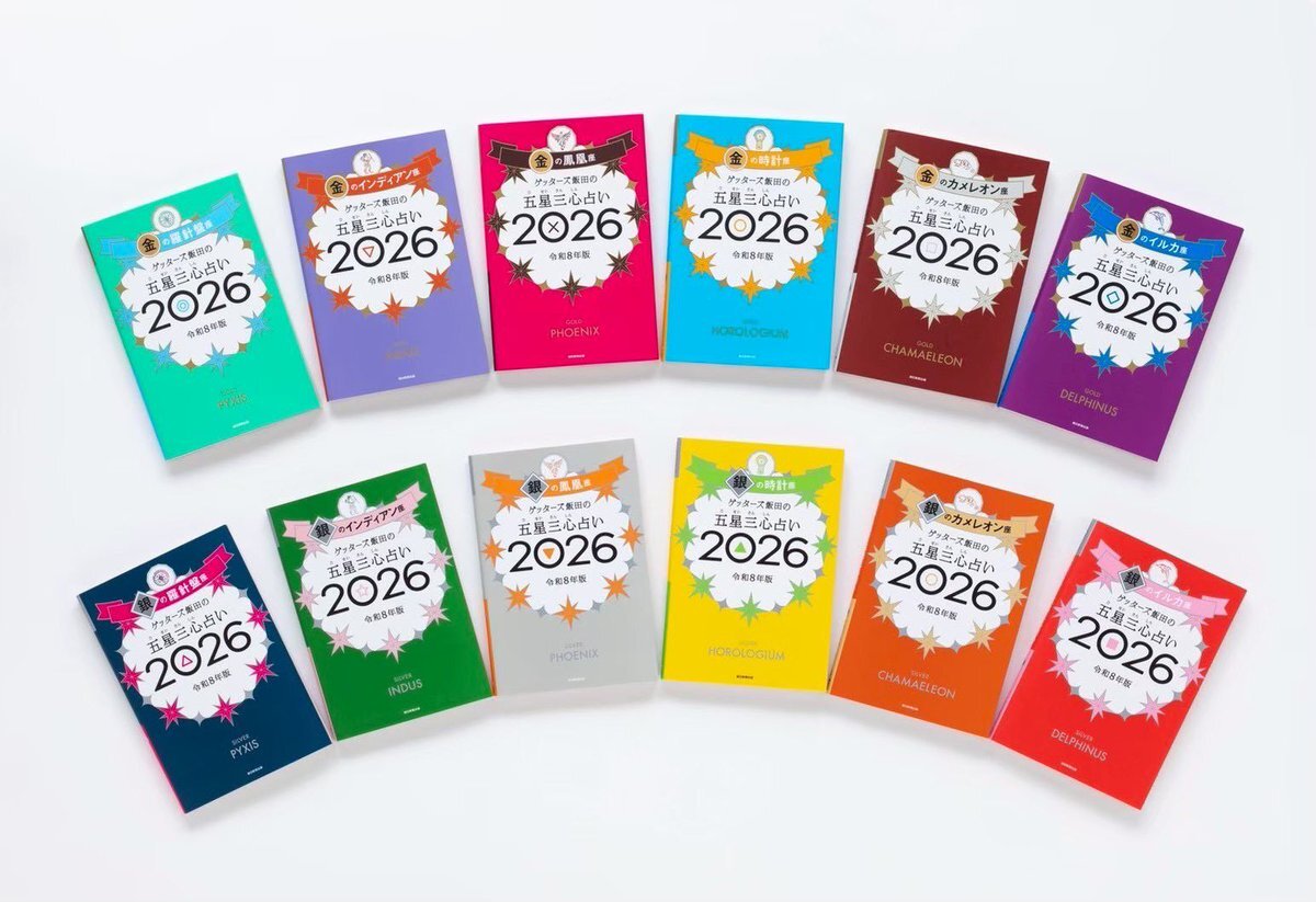 カラフルなカバーが魅力の 『#ゲッターズ飯田の五星三心占い2026 』は全部で12タイプ📚 本のカバーは2026年のラッキーカラーです☺️ すぐにできるタイプ診断はこちらから↓↓ asahi-getters.com/2026/ #ゲッターズ飯田 #占い pic.x.com/WakgQvd0vR