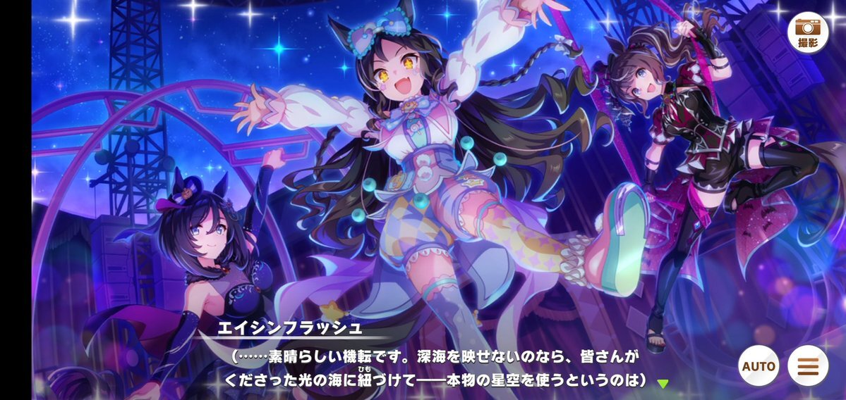ウマ娘のイベント見終わった。 ジャグリングなどのモーション凄かったわ。 あとトーセンジョーダンの結びつけが秀逸やねぇ。洋芝適性あったもんねぇ。 #ゲームウマ娘 pic.x.com/csIAvvuciB