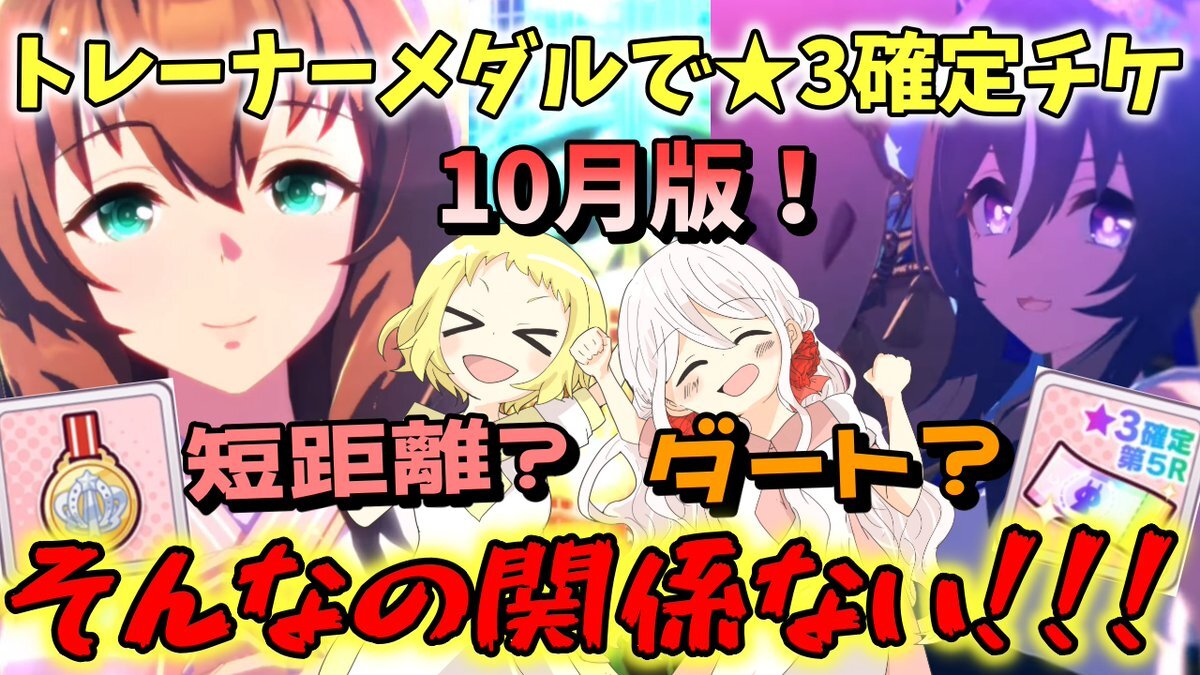 【ウマ娘!トレーナーメダル交換で★3確定ガチャ】 毎月恒例企画! 姉妹でトレーナーメダルで★3確定ガチャ! 10月編! 直近のチャンミやLOH関係なく ほしい子をあげていく姉妹← 果たして…?! ぜひ遊びに来てね🥰 youtu.be/lJk0ofr-7l0 #ウマ娘 #ゲームウマ娘 #確定チケット #確定チケ pic.x.com/wi35GdCGHC