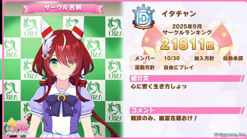 [ウマ娘 プリティーダービー] サークルメンバー募集中だよ。一緒にウマ娘を楽しもう! api-umamusume.cygames.jp/umamusume/cont… #ウマ娘 #ゲームウマ娘 #ウマ娘サークルメンバー募集 pic.x.com/JfLwmUHl6l