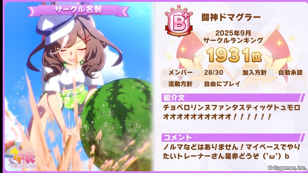 サークルメンバー募集しています(特にハヤヒデ推し) サークルルールは未ログイン3日目で除名 ファン数ノルマはありませんがB+以上を目指しているので600万以上稼いでいただけると助かります よろしくお願いします api-umamusume.cygames.jp/umamusume/cont… #ウマ娘 #ゲームウマ娘 #ウマ娘サークルメンバー募集 pic.x.com/gVcG0uDsAG