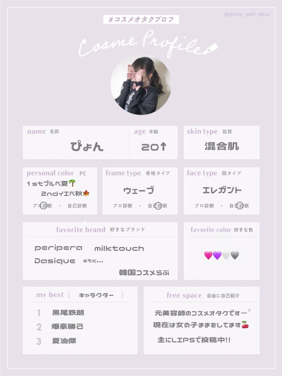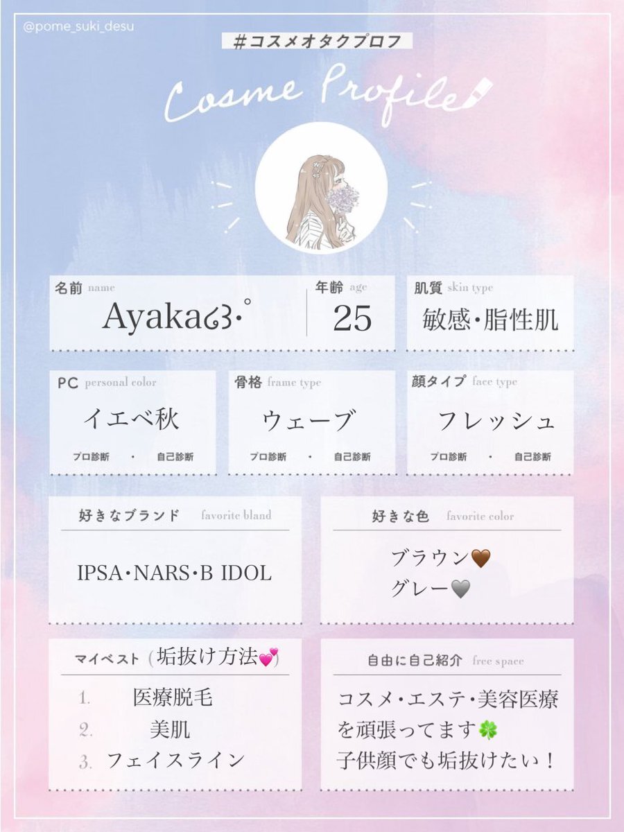 自己紹介🪄 ♡20代前半 /学生 ♡インナードライ肌/薄肌 ♡夏春ライト/ソフエレ/骨スト ♡snidelbeautyオタク 🌀毛穴(黒ずみ、開き)、クマ、シミ (最近はニキビにも悩んでますт т) 同じ年代だったり、診断が似てる方は 基本フォロバします✨️ #美容垢さんと繋がりたい #コスメ垢さんと繋がりたい