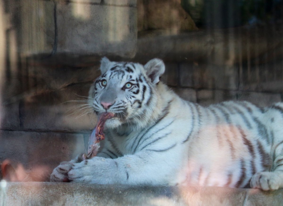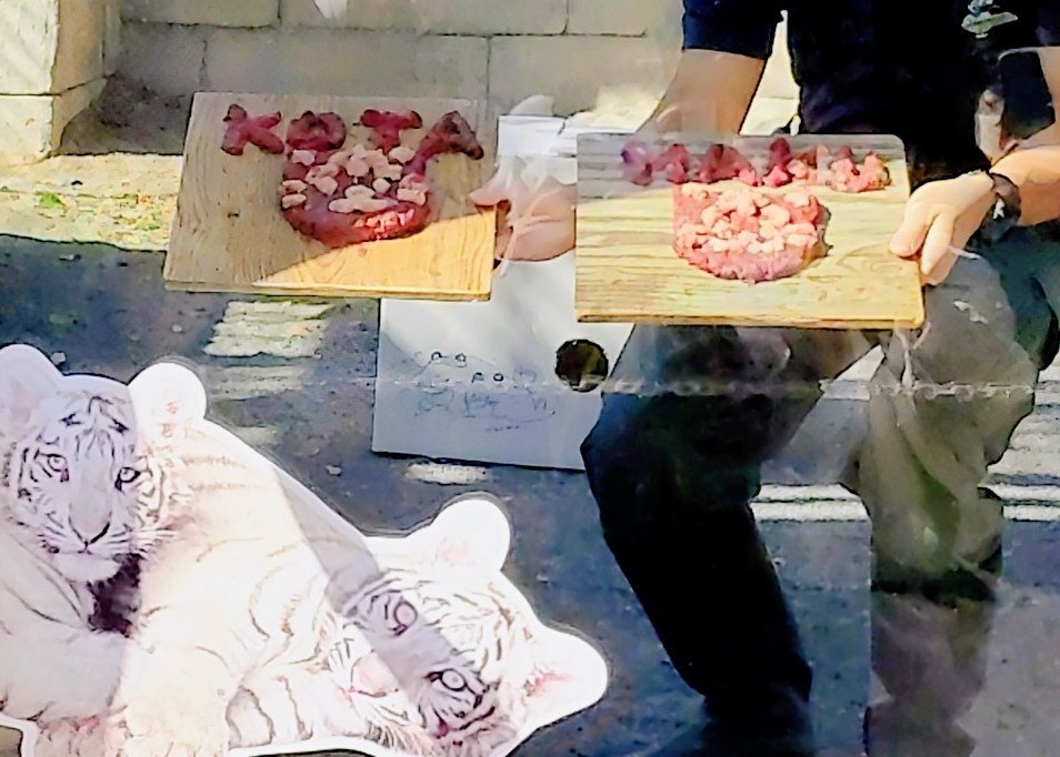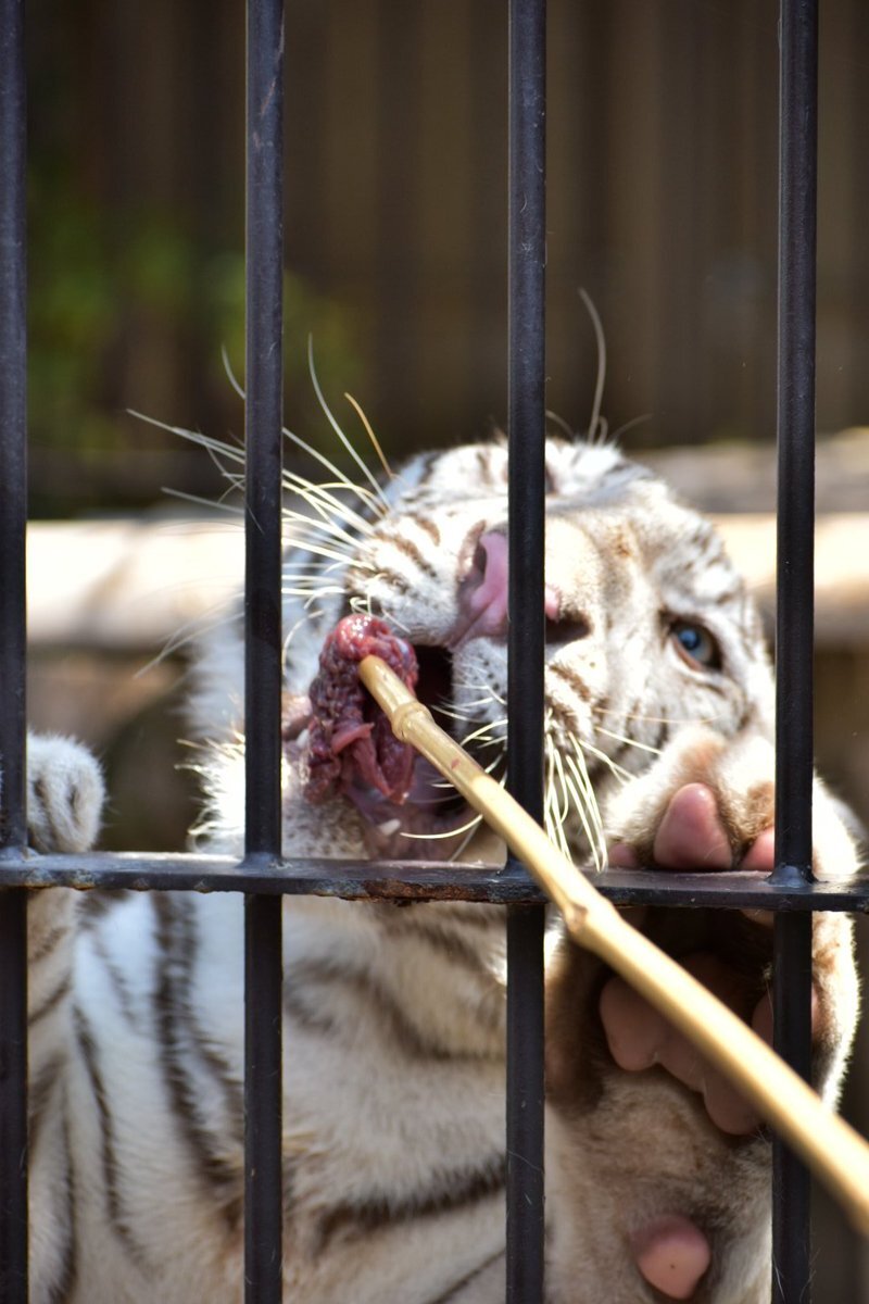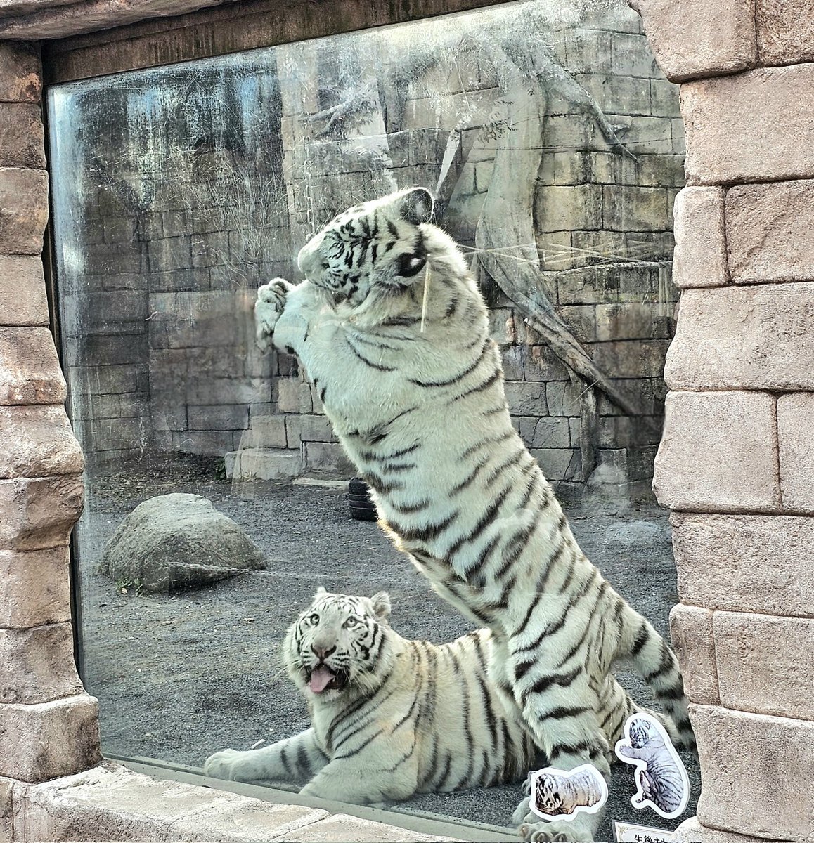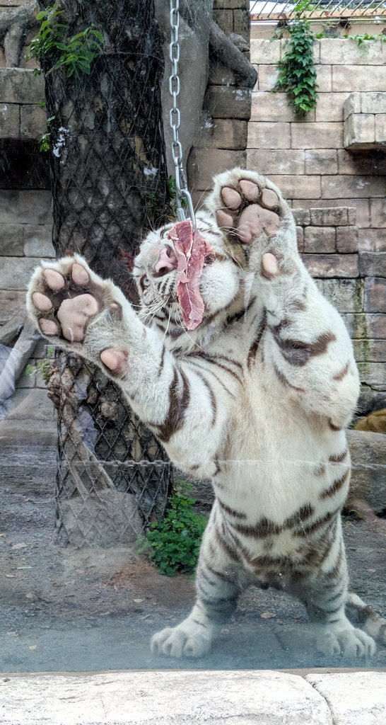 11/8東武動物公園のコタ🐯ハク 1歳🎂お誕生日おめでとうぶ㊗️の ガラス面に貼られた生後まもない写真と ホワイトタイガーガイドの🥩食べ中が 同じ姿になって、見比べると (コタ⇔ハクがたぶん違うけど) こんなにも大きくなったんだね😉 #東武動物公園🐅#コタハク #コタハクバースデーおめでとうぶ pic.x.com/QxcMqYE6CG