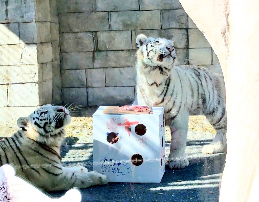 白虎ツインズ、コタとハク 11月7日は1歳のお誕生日です🎂 これからも仲良くおおきくなってね #東武動物公園 #コタハクバースデーおめでとうぶ #ホワイトタイガー #コタ #ハク pic.x.com/8aTSGKx0uO