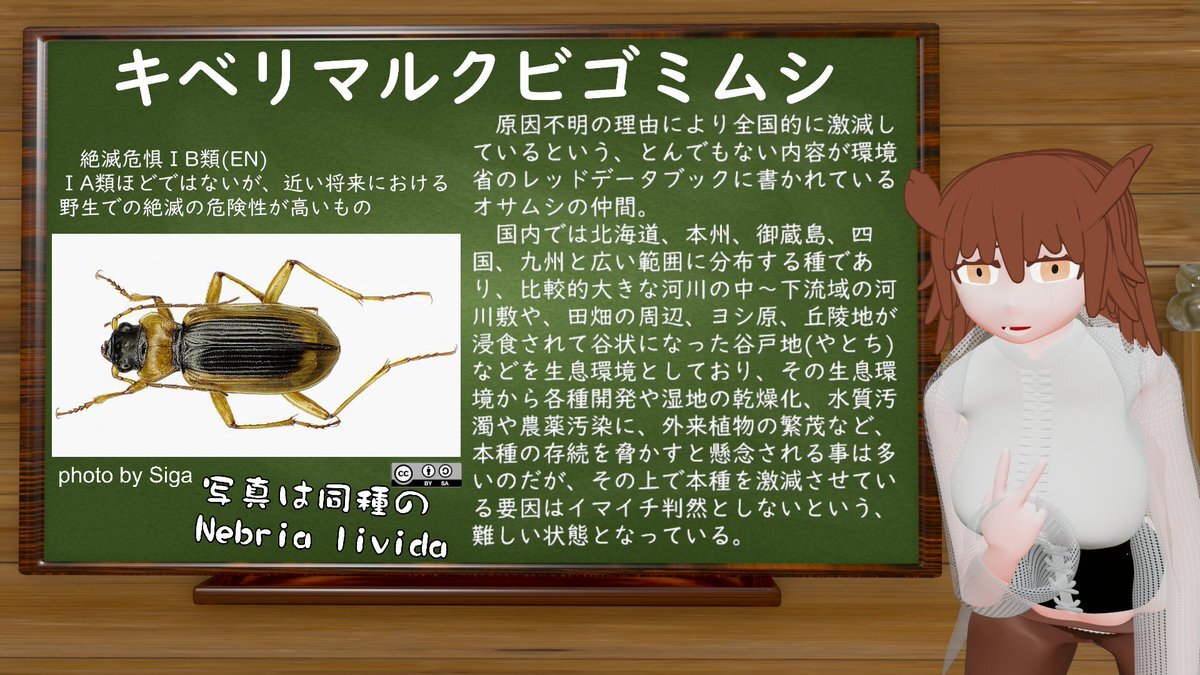 #コタンコロの絶滅危惧種を知ろう 今日の紹介は #キベリマルクビゴミムシ 全国的に激減しているが、激減している理由がイマイチ判然としないという難しい状態にあるオサムシ 本種を脅かしているであろう懸念点は多いのだが、そのうえで原因としてはやはり不明と……難しいね #おはようVtuber️️ pic.x.com/aCPlLpG5Oj