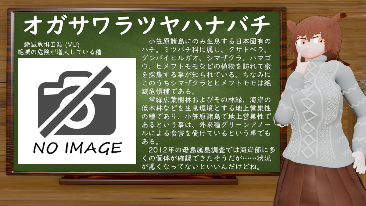 #コタンコロの絶滅危惧種を知ろう 今日の紹介は #オガサワラツヤハヤバチ 小笠原諸島に分布する日本固有のミツバチ 絶滅危惧種を含む小笠原諸島の花々に訪花する種であり、つまりこれらの花々の受粉を手伝っている種でもある 小笠原諸島の状況は難しいね…… #おはようVtuber️️ pic.x.com/pTKrxTZnS8