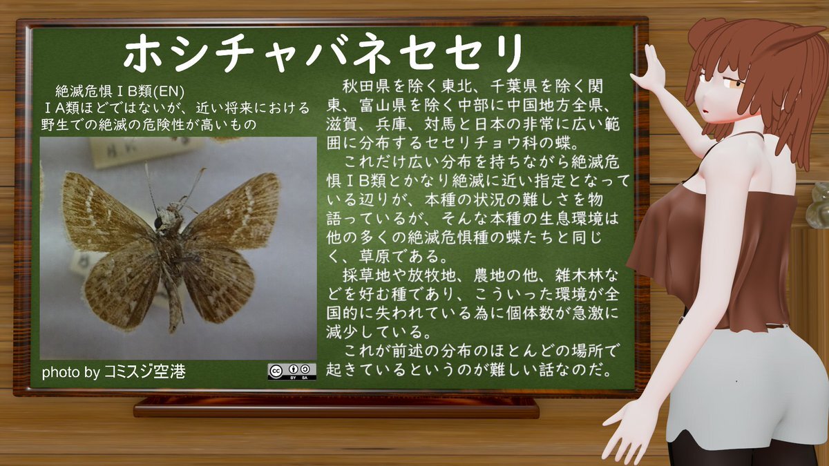 #コタンコロの絶滅危惧種を知ろう 今日の紹介は #ホシチャバネセセリ ほとんど日本全土と言ってもいいくらいの分布を持ちながら、かなり絶滅に近づいてしまっている蝶 人為的に管理されていた草原や里山等が時代の変化で減少してしまっているのが問題なのだが……難しい話でね #おはようVtuber️️ pic.x.com/SYK8OhOtWY