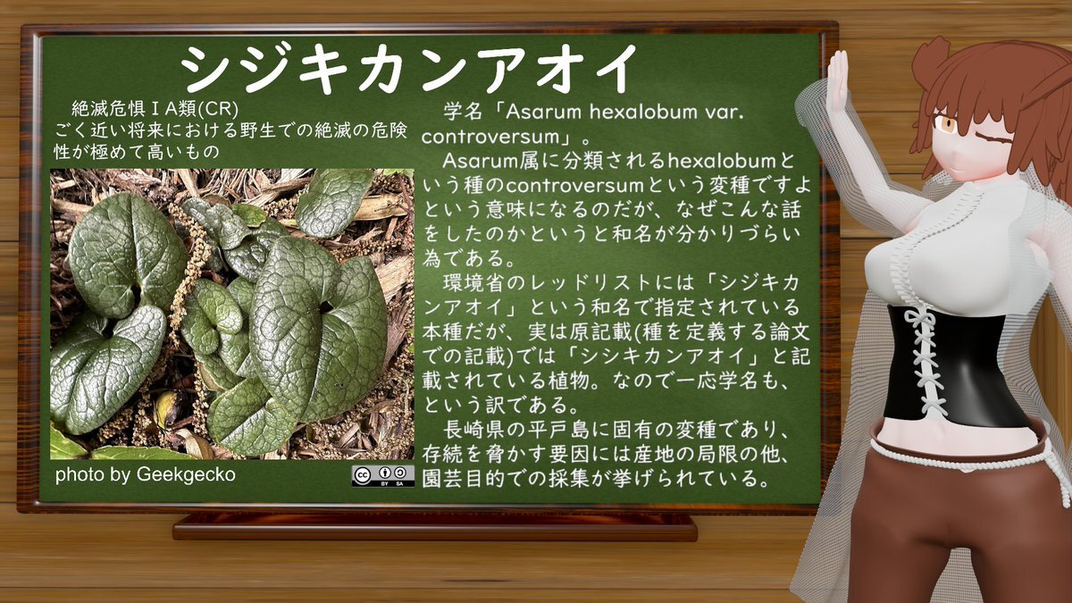 #コタンコロの絶滅危惧種を知ろう 今日の紹介は #シジキカンアオイ 学名というのは面倒くさそうに見えて慣れてくると中々便利なものである 〇属△種の亜種(変種)□□という分類上の立ち位置がパッと見て分かるし、名前が複数あったり被ったりしない まあ誤字は……どうだろうね #おはようVtuber️️ pic.x.com/3BIxs3ObGG