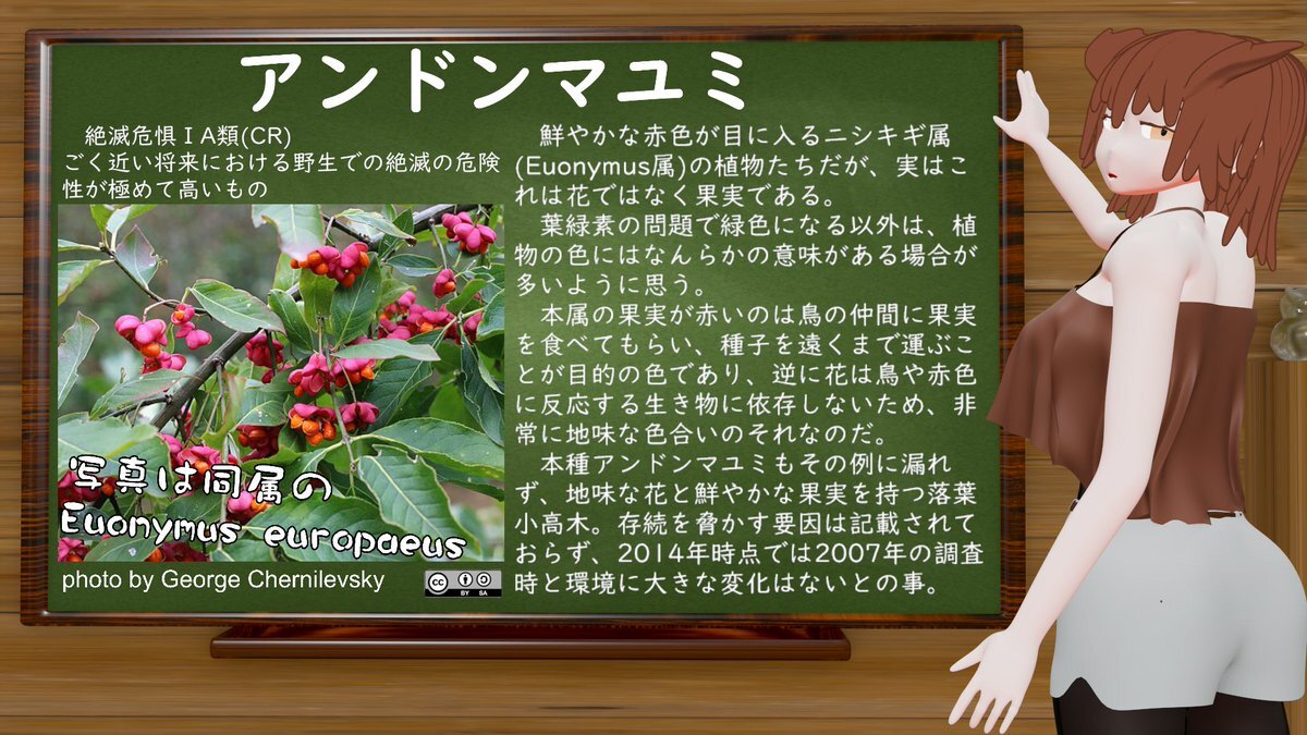 #コタンコロの絶滅危惧種を知ろう 今日の紹介は #アンドンマユミ 植物に鮮やかな色がついていると、ついそれが花に思えてしまうものだが、本種を含むニシキギ属の植物たちは、地味な花とは対照的な鮮やかな果実をつける植物である 色も生き物の戦略のうちだからね #おはようVtuber️️ pic.x.com/scQAeBQlFN