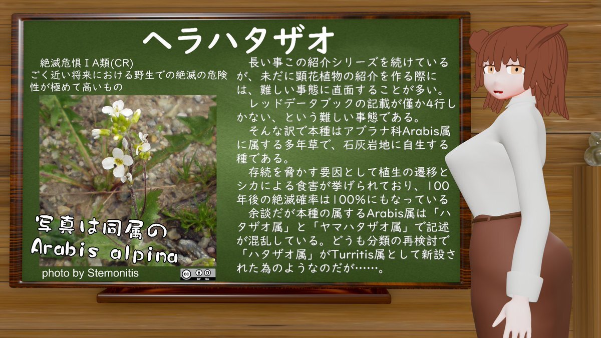 #コタンコロの絶滅危惧種を知ろう 今日の紹介は #ハナナズナ 既存の分布域のほとんどで生育が確認できなくなってしまっている植物 生息域外保全も行われており、最悪の場合はこの個体たちが最後の希望になる可能性も捨てきれない、そんな状態にある植物なのだ #おはようVtuber️️ pic.x.com/MPd9qzlcF6