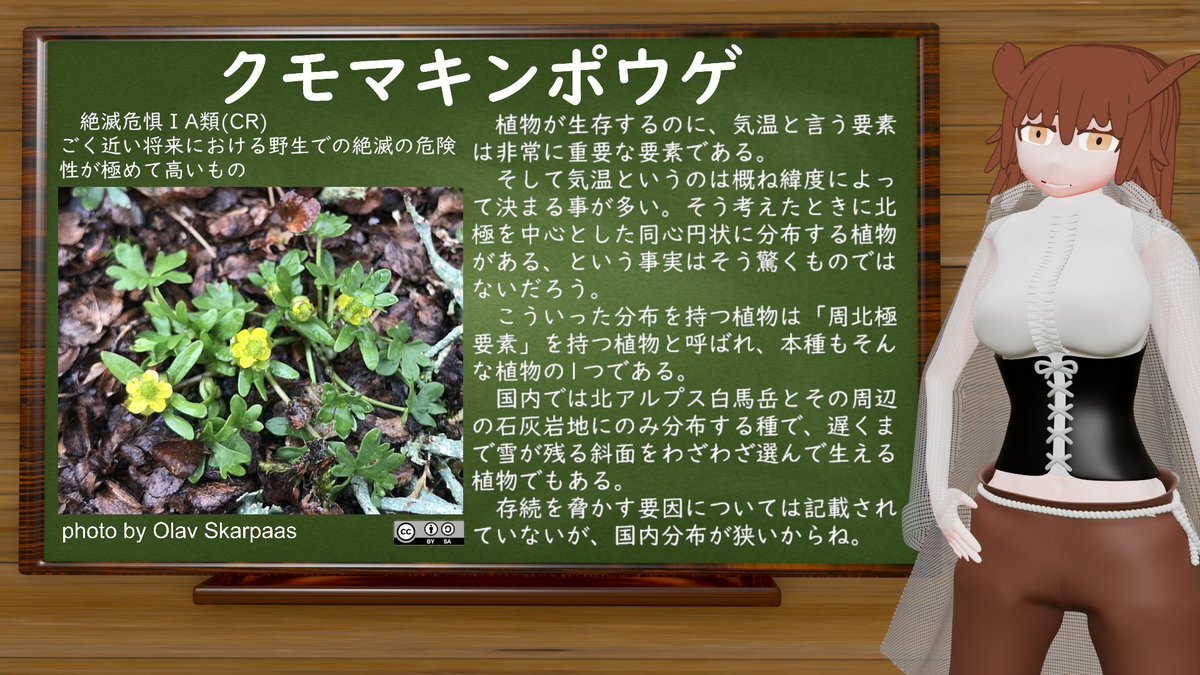 #コタンコロの絶滅危惧種を知ろう 今日の紹介は #クモマキンポウゲ 北極を中心とした同心円状、つまり地球という惑星において近い気温を持つ、ひと続きの巨大な帯に分布を持つ植物を「周北極要素」を持つ植物と呼ぶ 本種もそんな植物なのだが、国内分布は狭くてね #おはようVtuber️️ pic.x.com/kmJypOjDMe