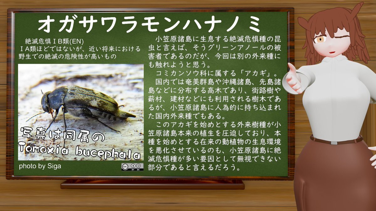#コタンコロの絶滅危惧種を知ろう 今日の紹介は #オガサワラモンハナノミ 小笠原諸島は多くの固有種と、それを脅かす多くの外来種が存在する島々である この紹介シリーズではグリーンアノールの名前をよく見るが、今回はアカギという外来樹種にも触れようかと思う #おはようVtuber️️ pic.x.com/FOmUWqepjZ