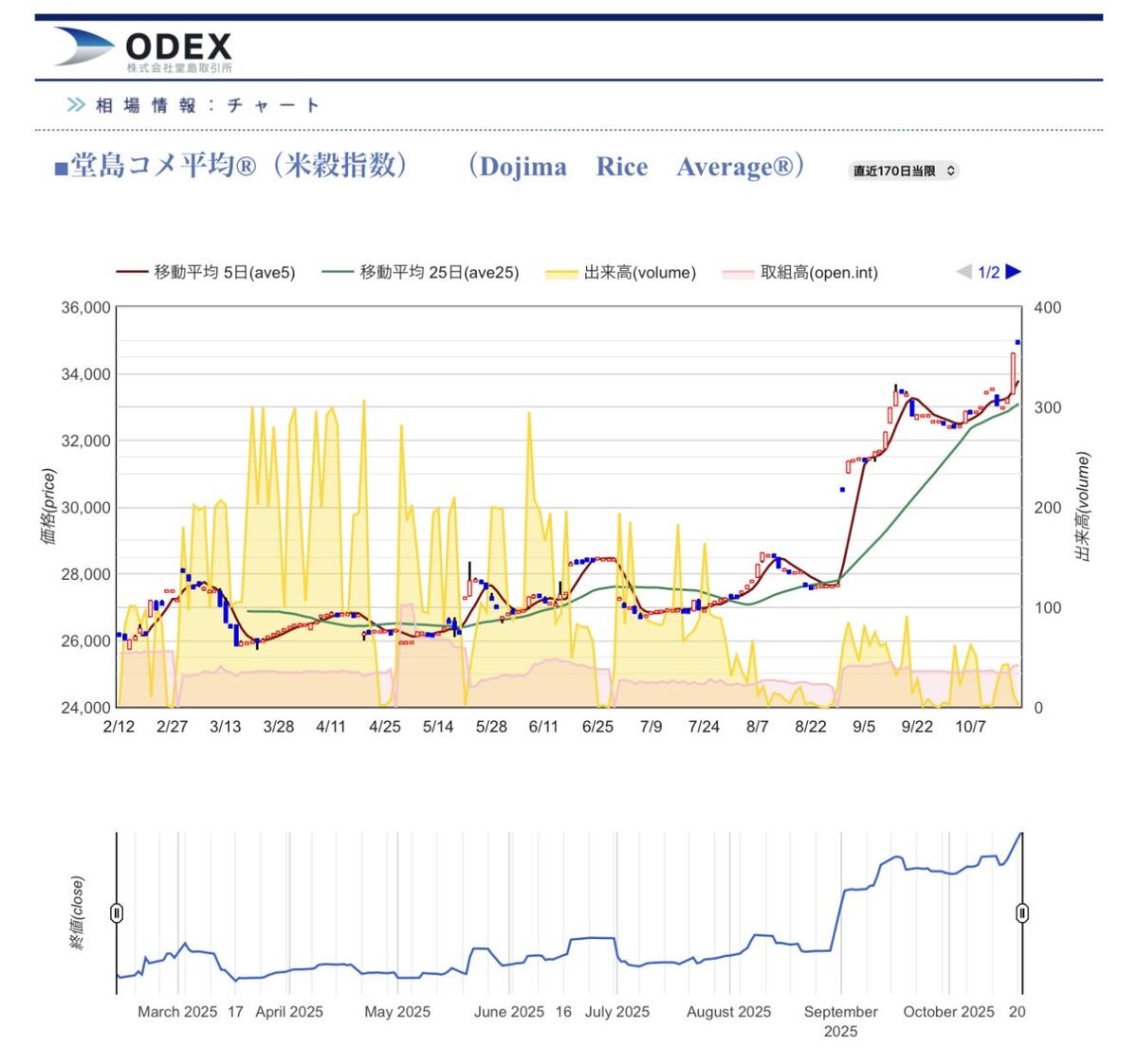 返信先:@norikazu_0130#農林水産大臣 #鈴木憲和 あなたが 農林水産大臣に就任すると報じられ #コメ価格急騰 してますな 銘柄米 コメ 5キロ 4950円 相場情報:堂島コメ平均(米穀指数) 限月 現在値 25/10 35000 25/10月 銘柄米コメ 5キロ 35000*0.14128=4944円(消費税込) pic.x.com/EO1WQSpPMu
