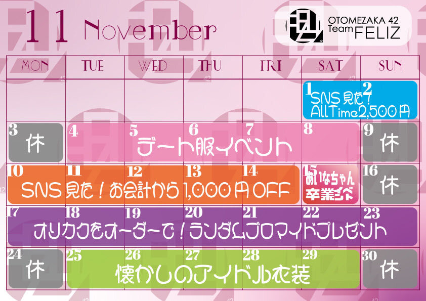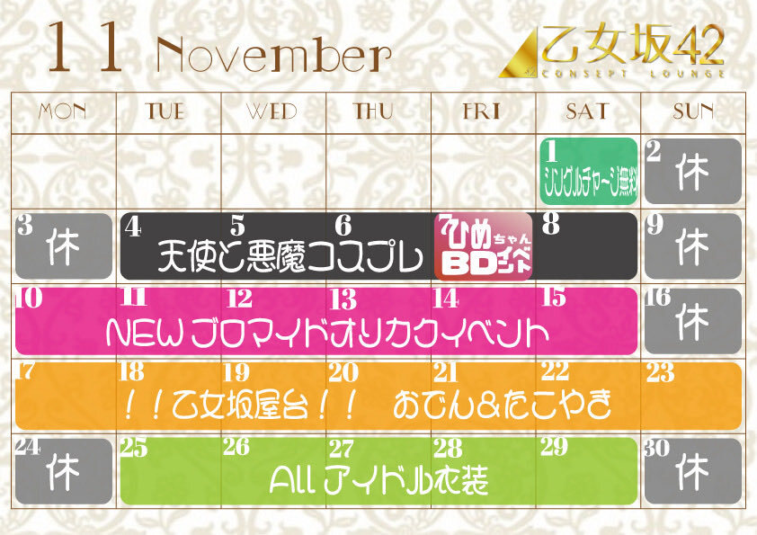 ⋆͛📢 11月のもちゃと会える日❕更新 時間が書いてある所、確定でいます‼️ 〇→でれます来店予定ください! リクエスト召喚もください!✡️ △→時間によって出れるので要相談 DMに来店予定、行ける日の候補、質問等送ってくださいദി^ᴗ ̫ ᴗ^₎⭐️ #新宿コンカフェ #コンカフェ行きたい pic.x.com/iWAneGVSJo